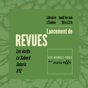 L’entrée est gratuite et les activités auront lieu à la Librairie l’Exèdre et au Café-bar Le Zénob. Un événement « hors les murs » se tiendra aussi le 3 mai à la Librairie Poirier.